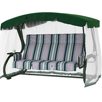 У нас вы можете приобрести тент, который подойдёт для садовых качелей Leset 904 Premium размером 261 х 150 х 185 см. Данный тент может иметь зелёный или коричневый цвет, благодаря ему вы будете защищены от солнца или осадков. Такой тент является водонепроницаемым, он с лёгкостью очищается и является износостойким. Вы можете использовать данный тент для того, чтобы не прерывать свой отдых на свежем воздухе даже во время сильного солнца или дождя.