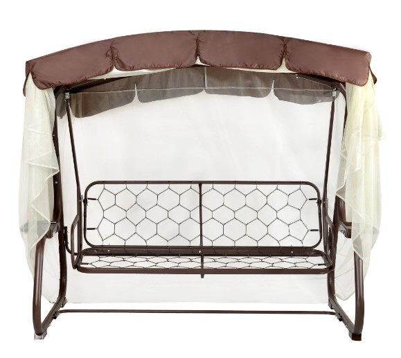Это тент, который используют с садовыми качелями, данная модель отличается тем, что с ней в комплекте находится москитная сетка, которая надёжно способна защитить вас от насекомых. Сам тент хорошо защищает вас от прямых солнечных лучей, а также от осадков. Данный тент имеет коричневый цвет, изготовлен он из полиэстера, данный материал является очень качественным и долговечным, размеры данного тента составляют 213х143х170 см. Для того, чтобы приобрести данную продукцию, просто добавьте в корзину необходимое количество позиций и оформите заказ.